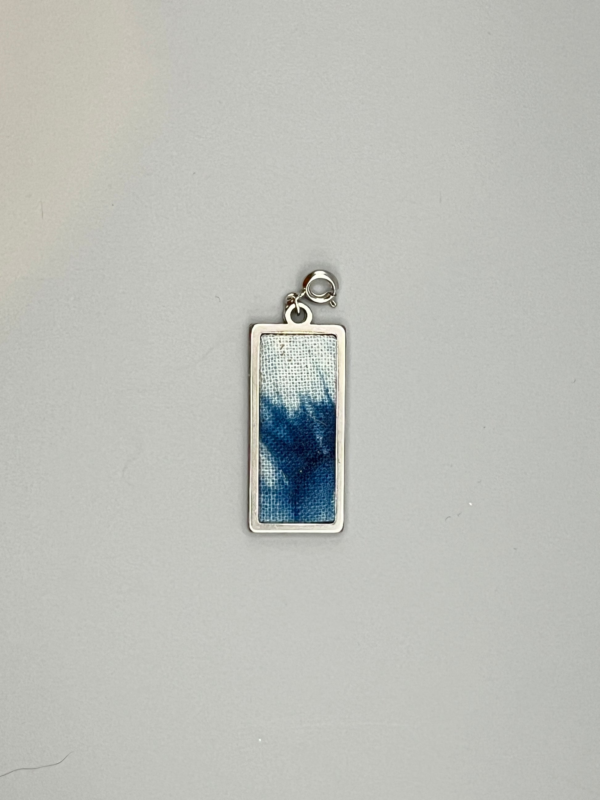 The pendant features traditional Hmong batik (wax-resist dyeing), a time-honored technique where wax is applied by hand to create intricate patterns before dyeing the fabric.